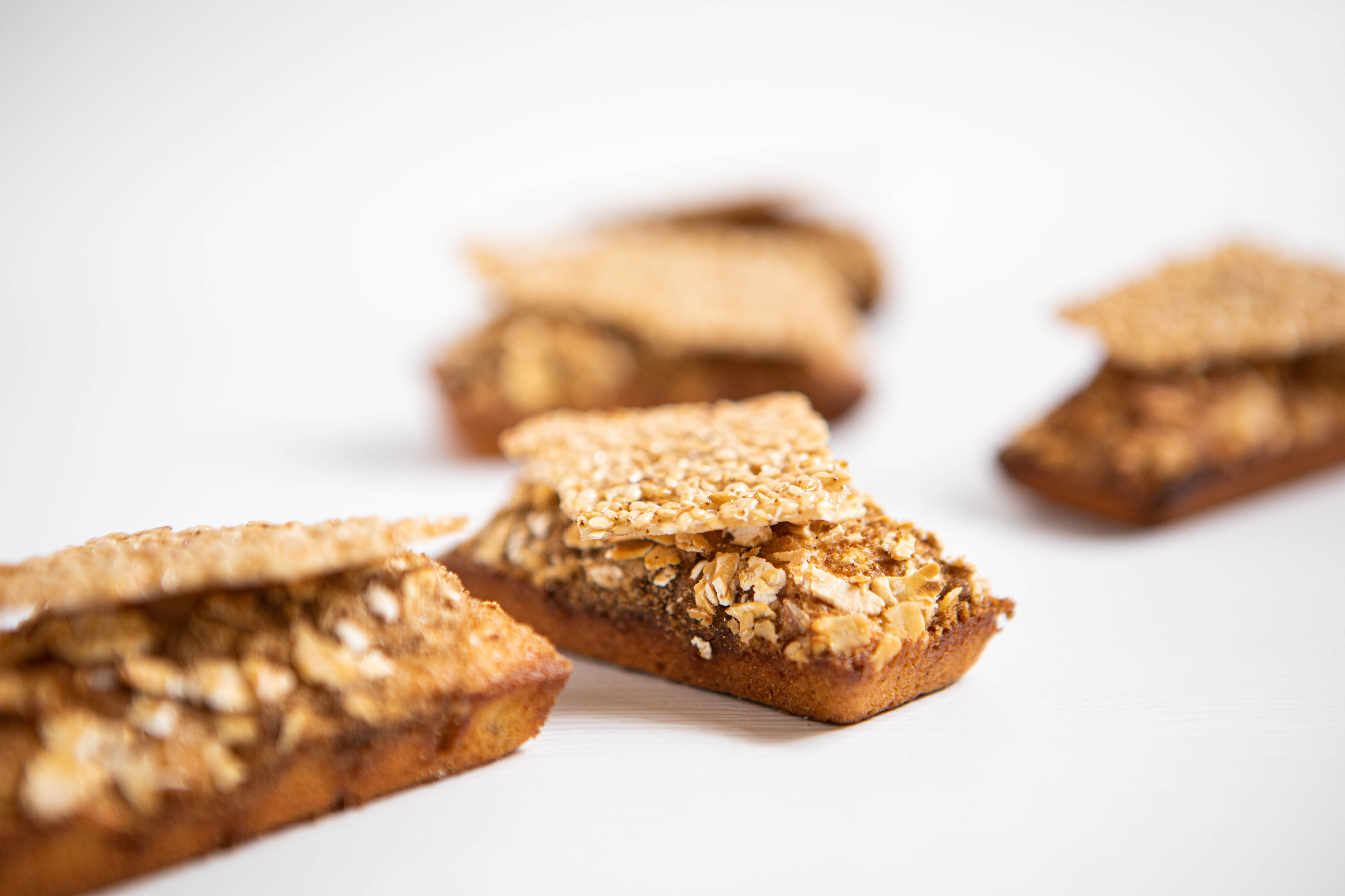 잘 태운 버터풍미와 고로케의 맛을 녹여 만든 반죽에 크리스피한 식감이 매력인 크럼블을 잔뜩 올려구운 베이컨고로케휘낭시에